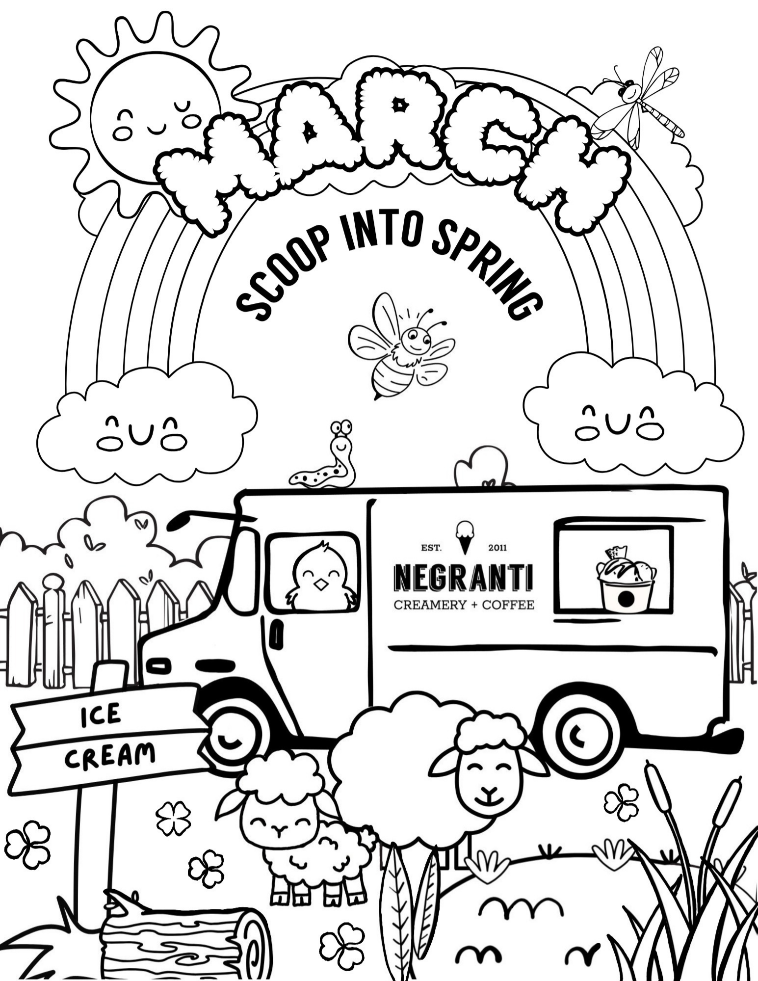 Download this month’s Negranti Coloring Sheet, print it, color it, and bring it into any Negranti Creamery location for a free scoop on us. One free scoop per coloring sheet.